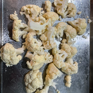 Coat the cauliflower pieces in your favorite cooking oil, I used Avocado oil,