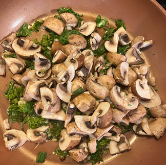 I love this side dish! It is a high fiber, nutritious, and delicious savory side for almost any meal. Any kind of mushrooms will work - I like baby Bellas, and the kale is of course optional, but adds a great additional texture, and additional nutrition- so win/win. Make a full meal with a lean protein such as shrimp, chicken or steak, and a nice salad.