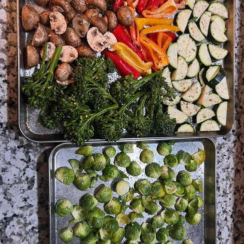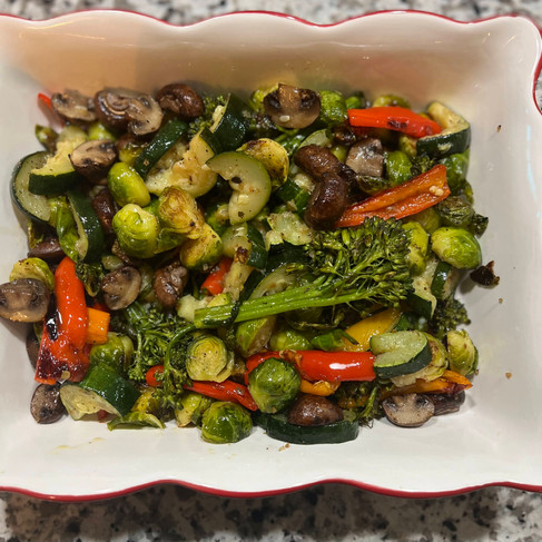 I used: Brussel Sprouts, Mushrooms, Zucchini, Baby Bell Peppers, Broccolini