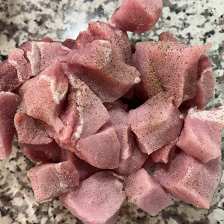 Cube your pork loin after trimming the fat.