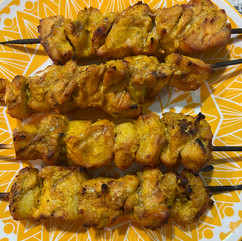 I followed this recipe for the Satay: Chicken Satay with Peanut Sauce - Damn Delicious, however substituted the chicken thighs for chicken breast for a lower cholesterol and saturated fat option.